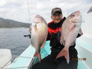 マダイは3.3kg2.9kgと良型出ました!トップ5枚! |